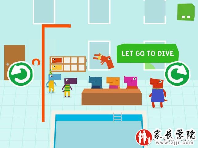 姐妹俩都很喜欢玩,她们觉得内裤恐龙和小伙伴们都太好笑了。游戏中,孩子可以选择小恐龙去投掷篮球和跳水,在游戏间歇中会出现关于“内裤规则”的提问,答对了,就可以给恐龙获得更多的装扮!
