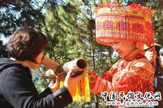村民吹奏葫芦笙欢迎客人。 王哲 摄
